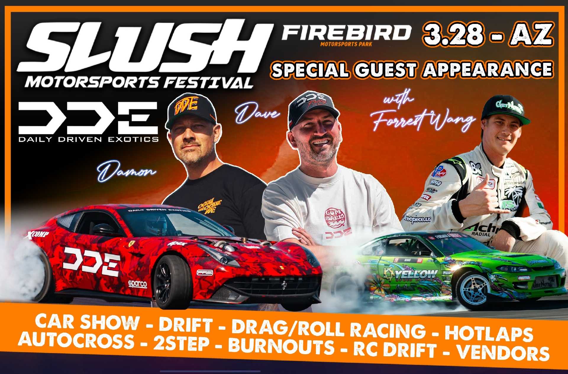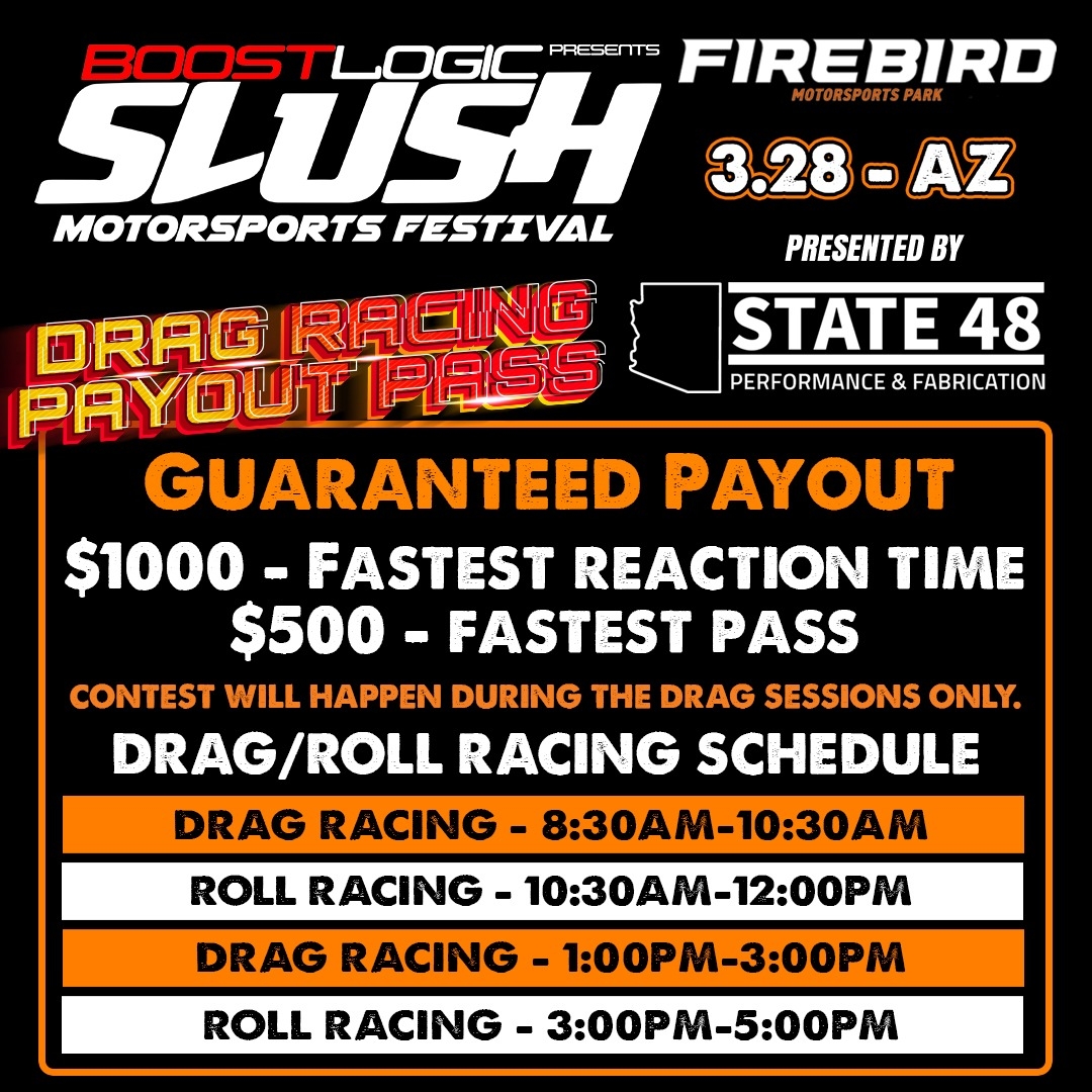 Passengers MUST be 14 years or older and have Minor Release Waiver signed by BOTH parents if under 18. The Minor Release Waiver MUST be signed with BOTH parents in attendance at Firebird Motorsports Park. Pre-signed waivers turned into the tech department without both parents onsite will not be accepted. All passengers must wear a helemt. Waiver and passenger wristbands will be located at the Slush Merch/info Booth.