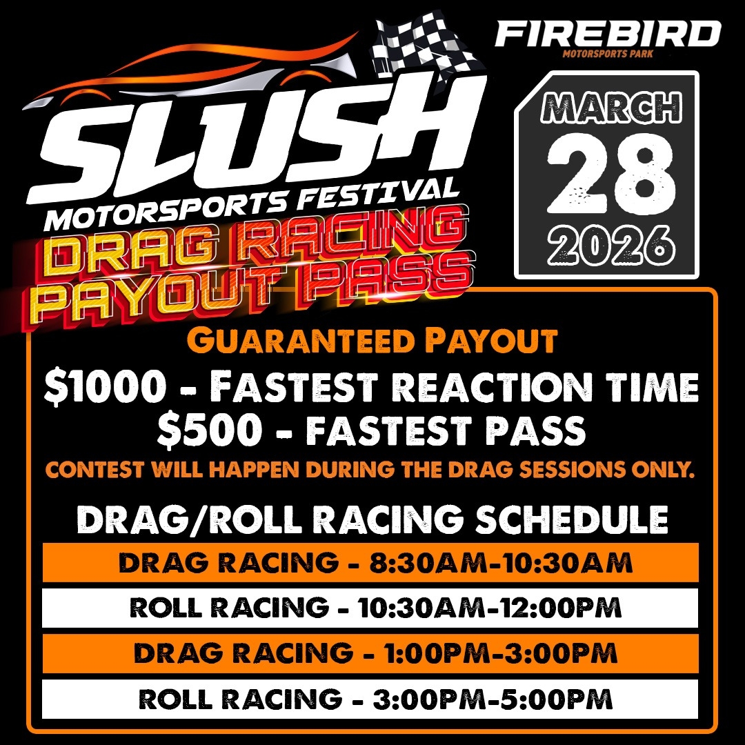We strongly suggest that guests under 18 years of age attending a SLUSH event are accompanied by a parent or guardian. Drivers must be 18 or older. Passengers MUST be 14 years or older and have Minor Release Waiver signed by BOTH parents if under 18. The Minor Release Waiver MUST be signed with BOTH parents in attendance at Firebird Motorsports Park. Pre-signed waivers turned into the tech department without both parents onsite will not be accepted. All passengers must wear a helmet.