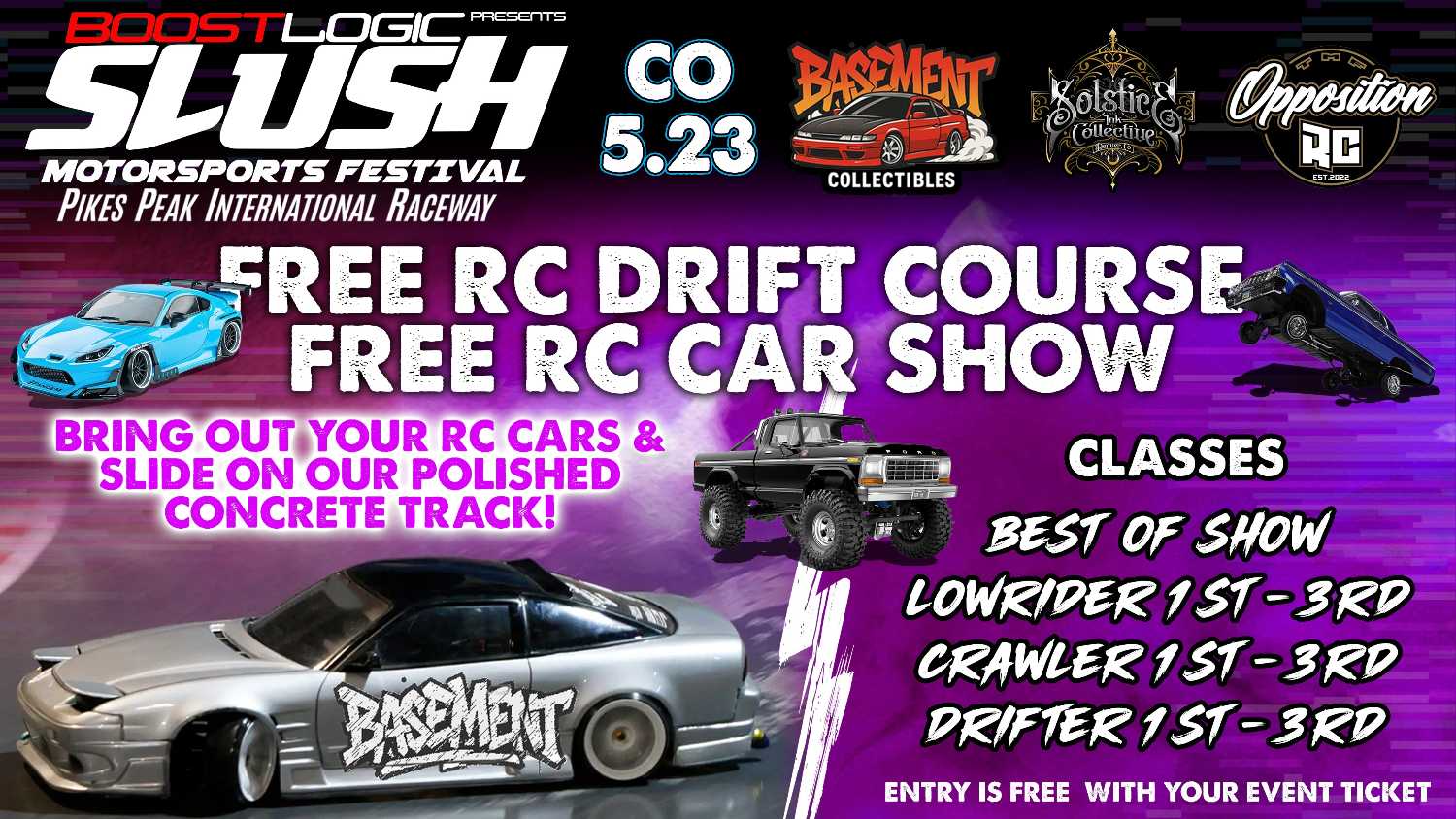 TRAILERS will be permitted for drift only. We ask that drag, hot laps, and car show vehicles first park in the trailer parking area. There is a paved trailer lot up by general admission to offload your vehicle and then make your way to the tunnel gate entrance upon arrival. If you have a special circumstance please reach out to stacy@slushmotorsports.com