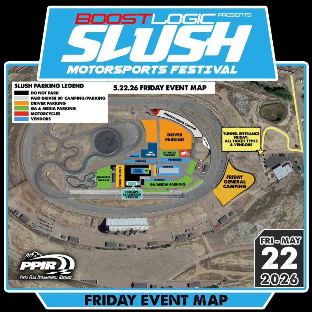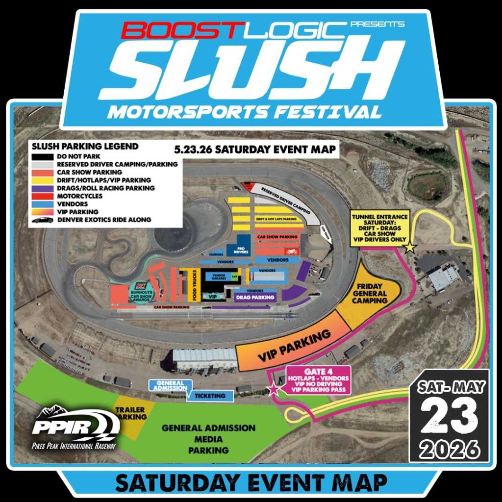 LARGE DRIVER RIGS - SLUSH has a limited number of 15'x80' Driver Rig Parking Spaces as a paid ticket option. Once you add your drivers pass to your cart and click "checkout", you will be presented with an option to purcahse a "Saturday Driver 80' Foot Rig". These spaces are located in the Infield near Turn2. This Ticket is valid for a 15x80 DRIVER infield parking space ONLY on Saturday May 23, 2026. If you are also attending Friday, you should choose the Friday camping option and not this pass. DOES NOT INCLUDE POWER. Must have a driver pass (Hot Laps, Drift, Drags) All trucks, trailers, campers, support vehicles MUST fit in your space. If you need additonal space you will need to buy an additonal space. Additonal General Admission Guests must have thier own festival admission ticket and will need to park additonal vehicels in the GA lot.