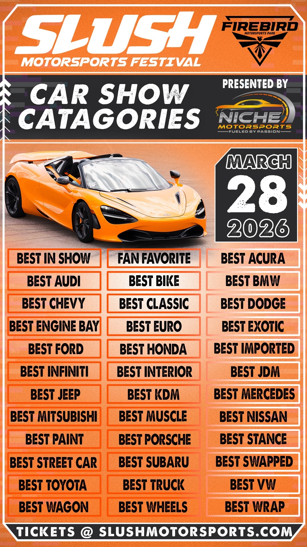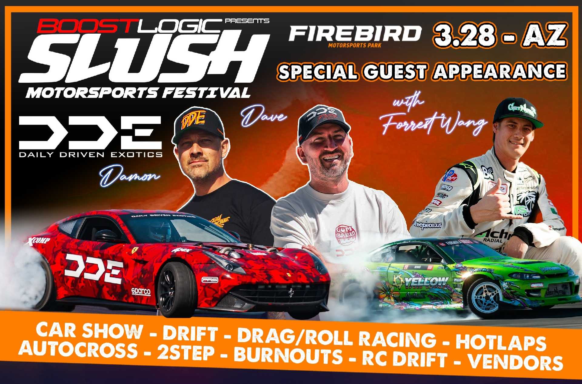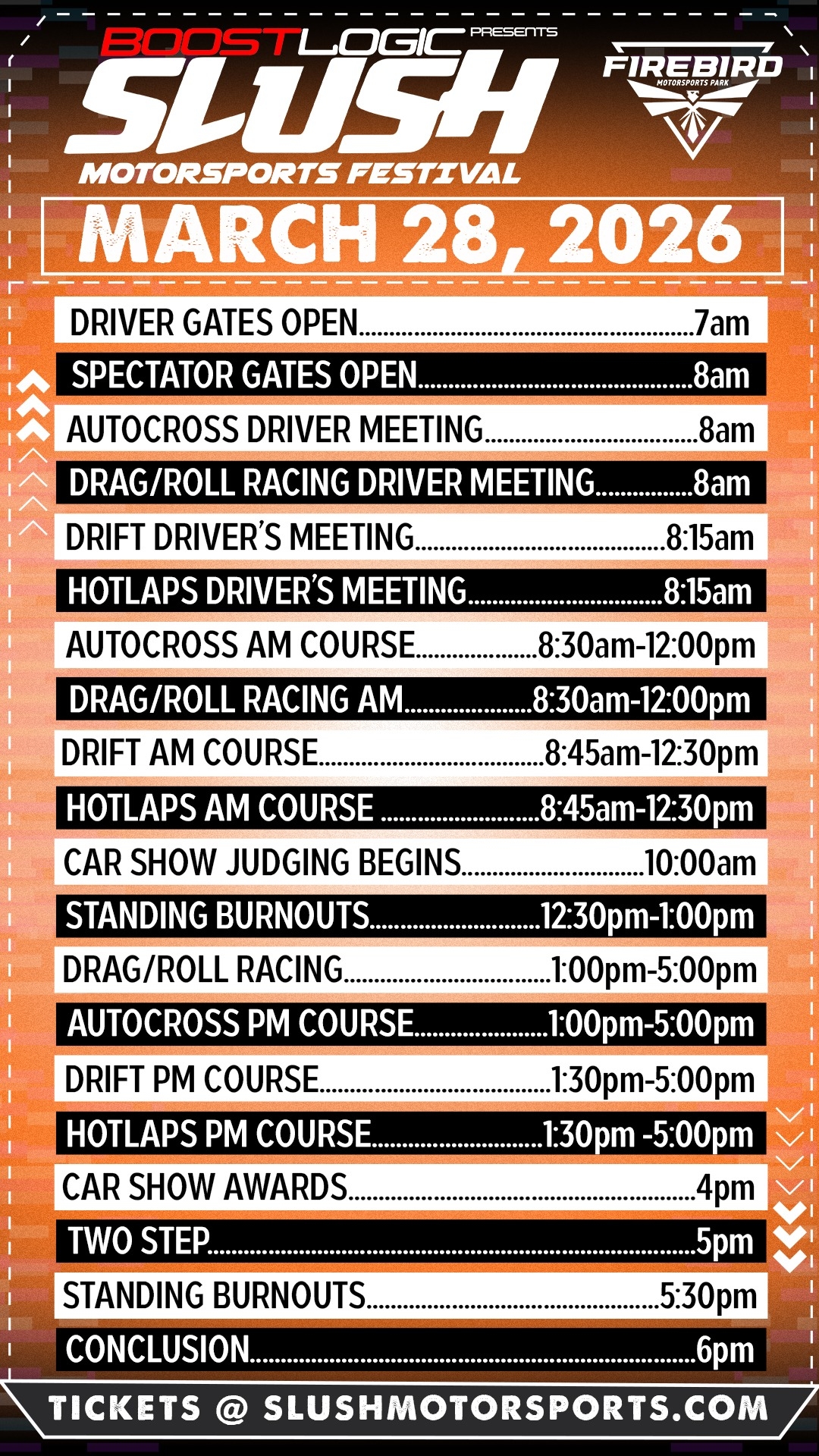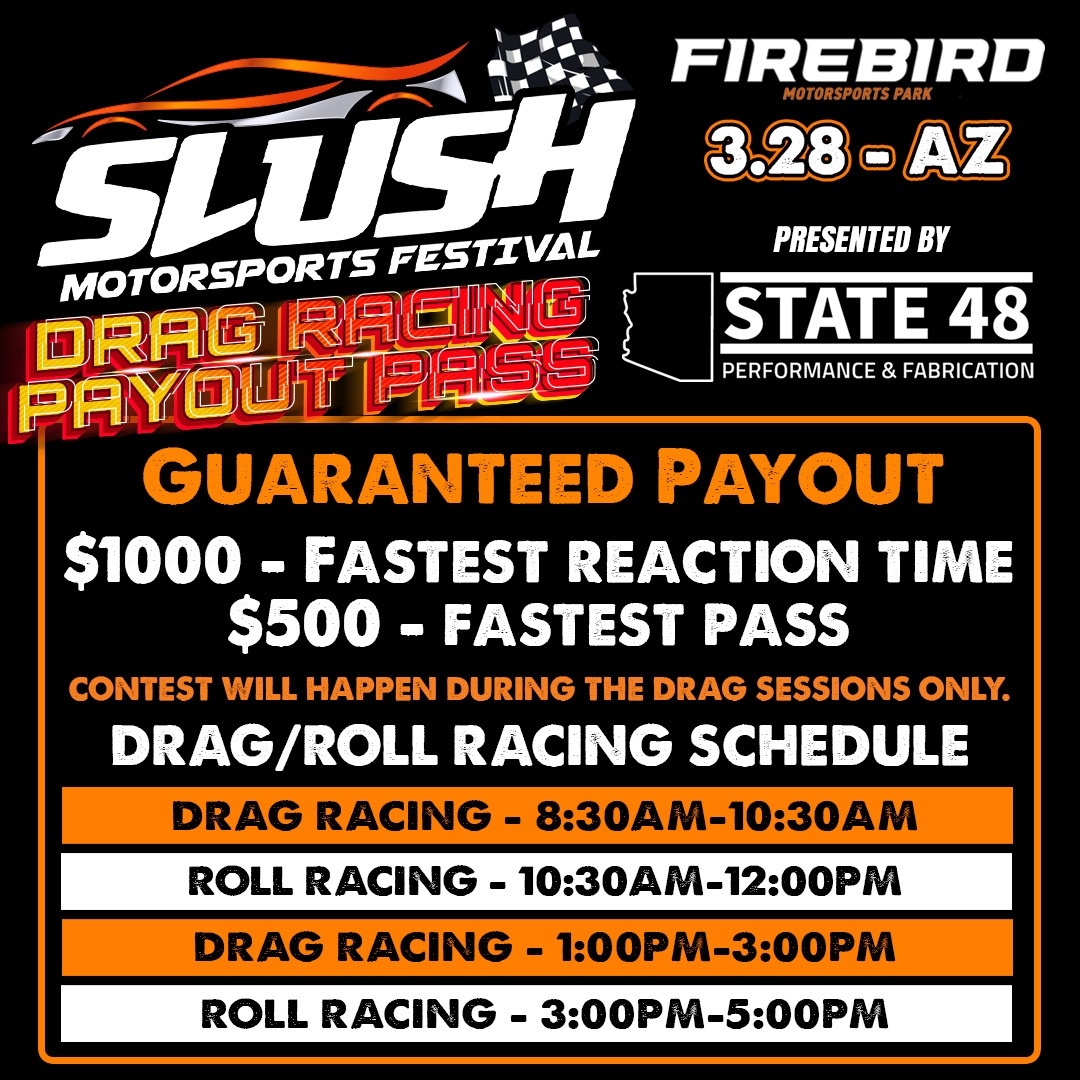 Passengers MUST be 14 years or older and have Minor Release Waiver signed by BOTH parents if under 18. The Minor Release Waiver MUST be signed with BOTH parents in attendance at Firebird Motorsports Park. Pre-signed waivers turned into the tech department without both parents onsite will not be accepted. All passengers must wear a helemt. Waiver and passenger wristbands will be located at the Slush Merch/info Booth.